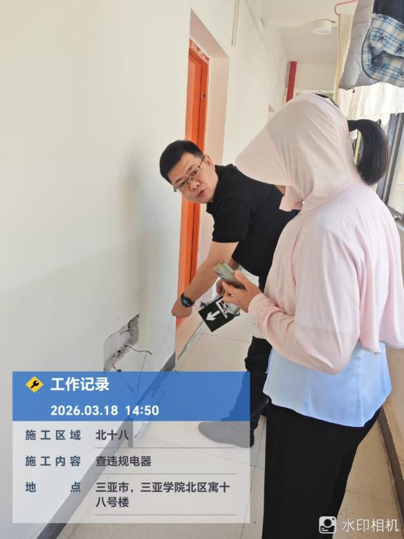 本次检查以“消除隐患、防患于未然” 为目标,聚焦宿舍用电安全关键环节,重点排查以下内容:一是违规大功率电器。电煮锅、电饭煲、大功率吹风机等300W以上的电器;二是用电安全隐患。私拉乱接电线、插线板串联使用、无 3C认证插座等危险行为;三是其他安全隐患。易燃易爆物品存放、空调外机杂物堆放、消防通道堵塞等问题。